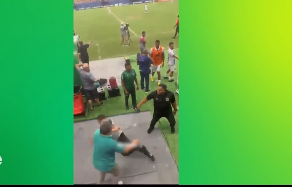 Nas imagens, é possível ver o gerente de futebol do Amazonas, Frank Bernardo, acertar um soco em Thomaz Lucena, preparador físico do Paysandu, logo no início. Em seguida, próximo a cabine do VAR, o presidente do Amazonas, Wesley Couto, acerta um soco em Nayllhor, jogador do time paraense.