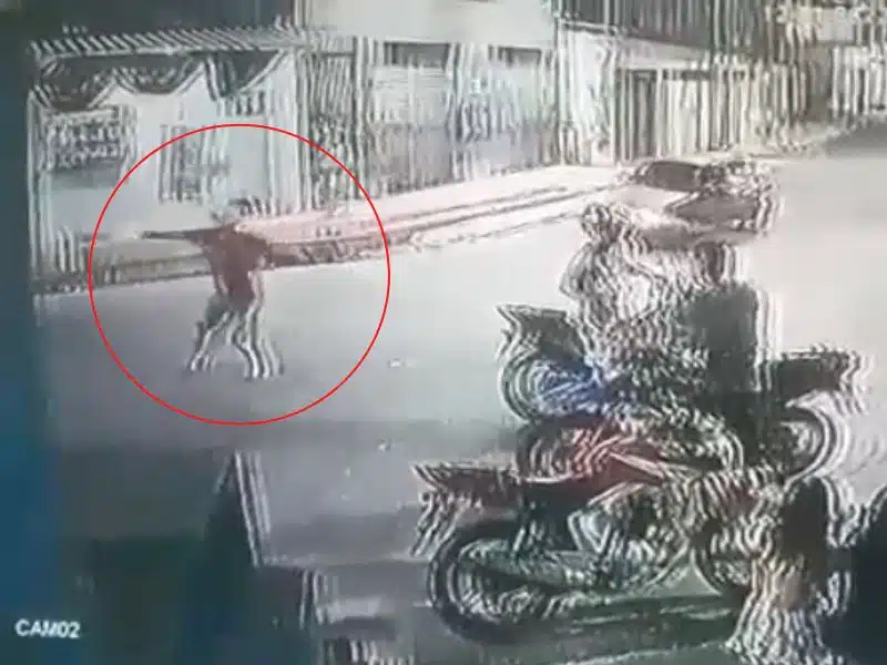 No vídeo de segurança, duas moças estão sentadas na calçada. Há também um casal numa moto estacionada que aparentemente pedem uma informação para elas, quando derrepente, o grupo que estava na frente de um mercadinho é abordado por uma dupla de assaltantes que chegou em uma motocicleta. Os suspeitos recolheram os aparelhos celulares das vítimas.